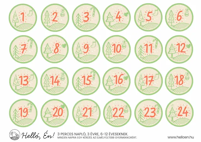 Weboldalunkon több nyomtatható sablon közül lehet választani: szívecskés, hópehelymintás, kerek, szögletes, piros, kék, zöld és pink. Idén pedig egy új matrica szettet is hoztunk, a Helló, Én! jóvoltából! Biztosan talál mindenki olyat, ami illik ünnepi kalendáriumához. Örömteli naptárkészítést és nyitogatást kívánunk!