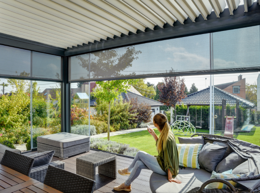 Hőszigetelt üvegpanelek: Archishade árnyékolástechnika – A megfelelő oldalzárások és kiegészítők alkalmazásával egy lamellás pergola akár egész évben plusz életteret biztosít. Az eltolható vagy lapozható üvegpanelek már hőszigetelt kivitelben is elérhetők, így garantáltan bent tartják a meleget a hidegebb hónapokban.
