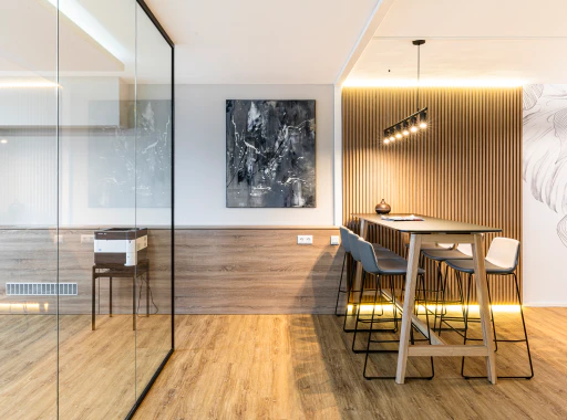 Az LVT burkolatok a modern HoReCa és irodai terek egyik legsokoldalúbb megoldását jelentik, ahol az esztétikum és a műszaki teljesítmény egyensúlya kulcskérdés. A nagy felbontású dekorfelületek révén élethű fa-, kő- vagy betonhatás érhető el, miközben a rétegrend kiemelkedő kopásállóságot és mérettartást biztosít intenzív igénybevétel mellett is. A különböző formátumok – plank, lap vagy akár nagyméretű panelek – lehetővé teszik a tér vizuális strukturálását és zónázását. Az LVT előnye a gyors, tiszta kivitelezés és az egyszerű karbantarthatóság, ami jelentős üzemeltetési előnyt jelent szállodák és irodaházak esetében. Kiváló akusztikai és komfortparaméterei révén hozzájárul a kellemes beltéri élményhez, míg a moduláris rendszerek biztosítják a sérült elemek lokális cseréjét. Az eredmény egy tartós, design-orientált burkolat, amely hosszú távon is költséghatékony megoldást kínál nagy forgalmú terekben.