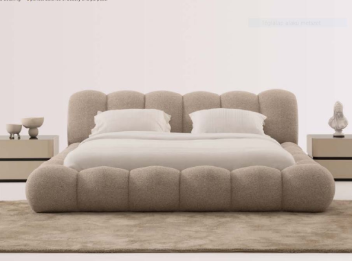 Szigethy Design - A Coco ágy egyedi formájával és puha textúrájával kifinomult menedékké varázsolja alvóterét a kényelmet az időtlen megjelenéssel ötvözve a finom eleganciával. Az ágyhoz több minimalista éjjeliszekrény is könnyen párosítható. A hálószobába nyugodt és derűs hangulatot teremt lágy íveivel és természetes tónusaival. A tágas ágy a kiemelkedő minőségű matraccal pihentető alvást biztosít, míg a minimalista éjjeliszekrények és a komód ötvözik a praktikusságot az eleganciával. Harmonikus választás a modern belső terekbe.