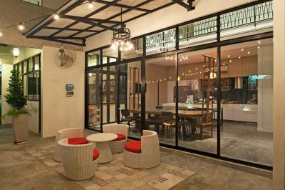 Nagy ablakfelületekkel tagolt homlokzat