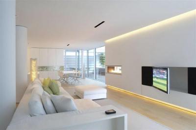 Látványos megoldás a térelválasztásra: alacsony polc és szinteltolás