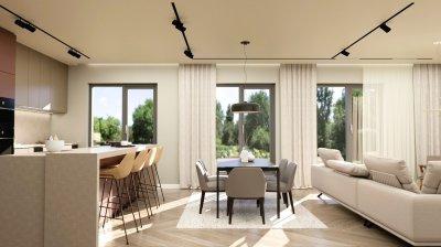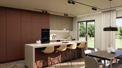 Tágas konyha, melynek méretét az üvegtető is nagyobbnak láttatja