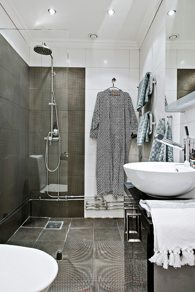 Szuper inspirációul szolgál ez a lakás mindenkinek, aki egyterű otthont szeretne úgy berendezni, hogy minden funkciónak külön tere legyen. A hálófülkét vékony fallal választották le a konyháról, amit a téglával kirakott sziget választ el a nappalitól. Az elkülönítést tovább erősítik a választott burkolatok, miközben az egész lakásra jellemző bézs-szürke-fehér jegyek összekötik az elkülönített tereket. Egyszerűen profi!