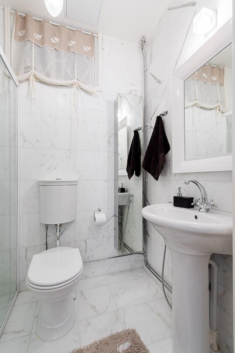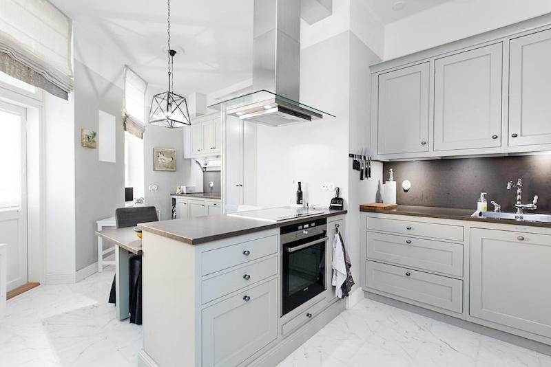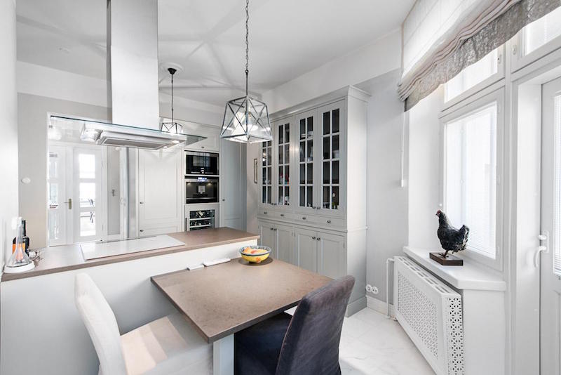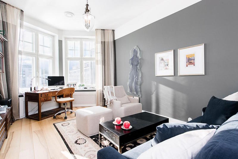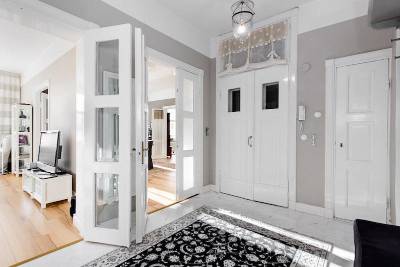 Lahtiban található ez a 132 m2-es otthon, melynek berendezésére a monokróm színek használata, és a klasszikus, elegáns bútorok a jellemzőek. A szürke sokféle árnyalata, fehér mennyezettel letisztulttá teszi az enteriőrt. A hálóban használt barna tónus melegséggel tölti meg a teret.