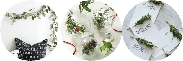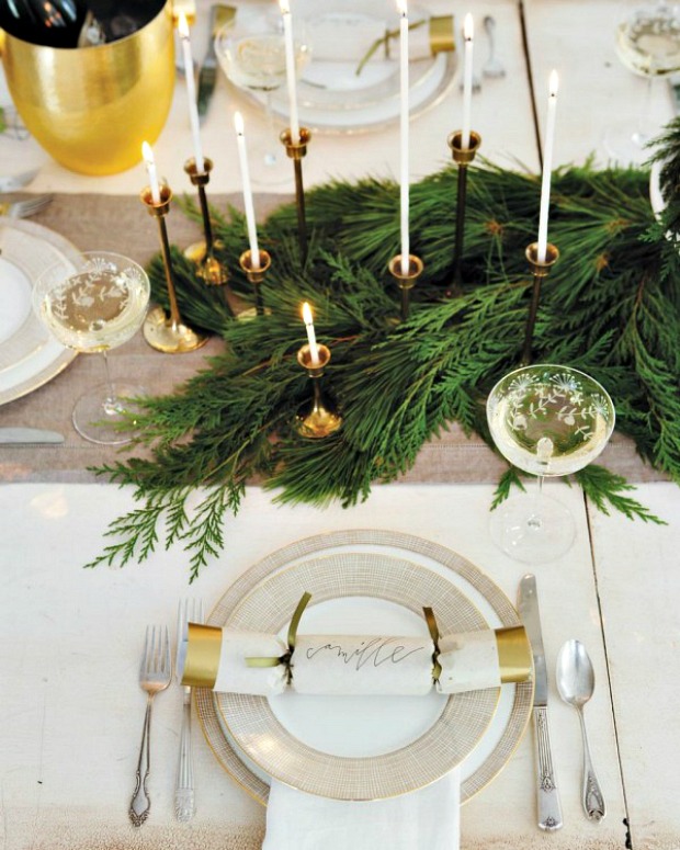 Zöld növények használata gyors és egyszerű módja a karácsonyi hangulat megteremtésének és a lakás ünnepi díszbe öltöztetésének. Kreatívan és bátran használhatjuk az ünnepi asztal, ajándék csomagok, gyertyák díszítésére, girlandként és karácsonyi díszekben is. Milyen "zöldeket" használhatunk? Fenyőágak, magyal, eukaliptusz, moha, mirtusz és még a fűszernövények is, mint a rozmaring vagy a vanília növény kellemes, illatos hangulatot adhatnak a karácsonyi asztalnak. A következő képek jó inspirációul szolgálhatnak az ünnepi dekorációhoz.