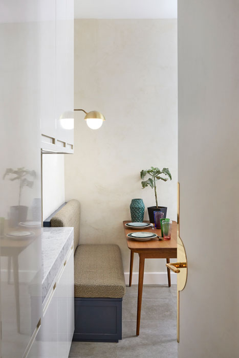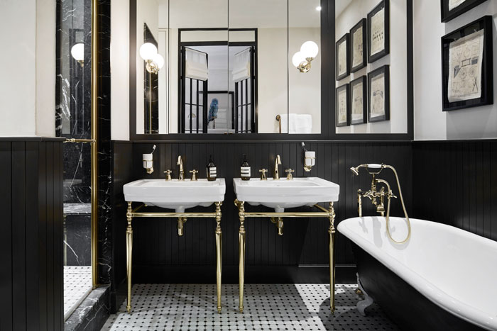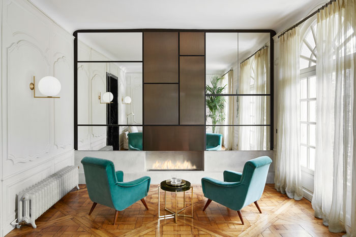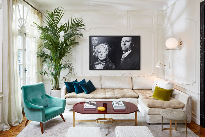 Egy francia filmrajongó Párizsban található lakása, amit a tulajdonos Laura Gonzales belsőépítész segítségével alakított saját ízlésére. A lakás stílusa eklektikusra sikerült, a klasszikus eleganciát, a nagy belmagasság és a szép Versailles fa parketta adja, a nagy tükör felületekkel kombinált fekete falpanelek, a lámpatestek az art deco életérzést csempészik a térbe és itt-ott még retro hangulatú elemet, bútort is megtalálunk. A használt színek a kontrasztra építenek, amelyet kevés türkiz színnel és olyan anyagok, mint a sárgaréz vagy arany használatával finomított a belsőépítész. Az egész lakásban megtalálhatóak a filmek iránti rajongás tárgyi elemei, a fekete-fehér fotók fekete keretben. Különleges és egy nagyon francia otthon!
