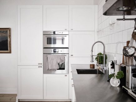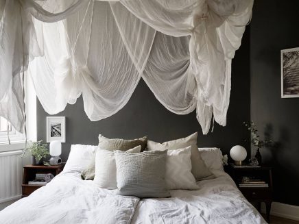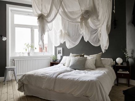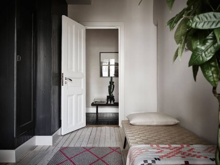 87 négyzetméteres igazi skandináv stílusú lakás a svéd Linnéstadenből, ahol a felújítás során figyelmet fordítottak arra, hogy az 1900-as évek elején épített ház eredeti építészeti elemeit megőrizzék. Az eredeti ablakkereteket, belső kétszárnyas ajtót, svéd padlót meghagyva, monokróm falszíneket választottak, amit stukkóval, díszléccel hangsúlyoztak. A lakást vintage valamint ehhez remekül passzoló modern bútorokkal rendezték be és így egy igazán egyedi otthont sikerült megvalósítani. A merészségük, hogy bevállalták a feketére festett falburkolatot és a fekete fapadlót külön dicsérendő!