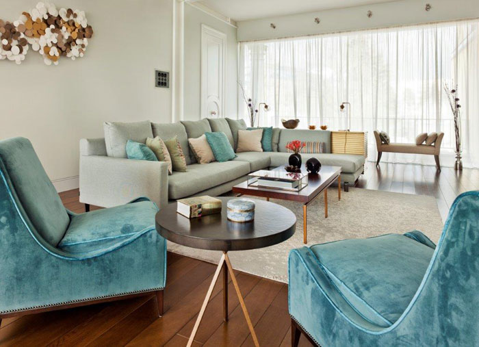 Két szintes családi otthon Moszkva északi részén, amelyet tulajdonosai Oleg Klodt Architecture & Design belsőépítészei segítségével formálták a saját stílusukra. A lakás egyszerre modern és elegáns, a retro bútorok, világító testek, az érdekes textúrák valamint a különböző geometriai formák, egyszerre finom eleganciát és játékos hangulatot csempésznek az enteriőrbe. Meghatározó kiegészítő szín a türkiz, amit a nappaliban, hálószobában, de még a gyerekszobában is megtalálunk, egy olyan elem, ami összefogja a lakás különböző tereit. Érdemes ezt a trükköt ellesni!