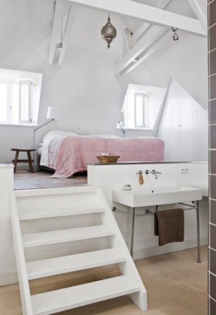 A következő blog poszt fotói azt mutatják be, hogyan érhetünk el játékos és érdekes térhatást a lakásban szinteltolás segítségével. Klasszikus megjelenési pontja a szinteltolásnak a nappali-konyha, a fürdőszoba-hálószoba vagy a nappali-dolgozószoba együttese. Könnyen és ötletesen is elkülöníthetjük a különböző funkciókat a térben egy épített dobogó segítségével, de kialakíthatunk a szintkülönbséget áthidaló lépcsőkből beépített könyves szekrényt, tárolót is. Érdemes játszani a terekkel!