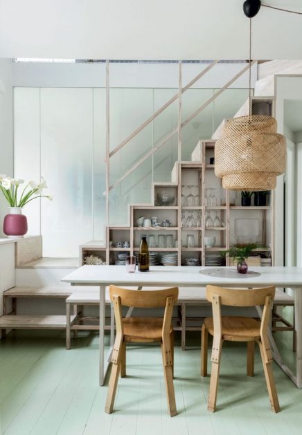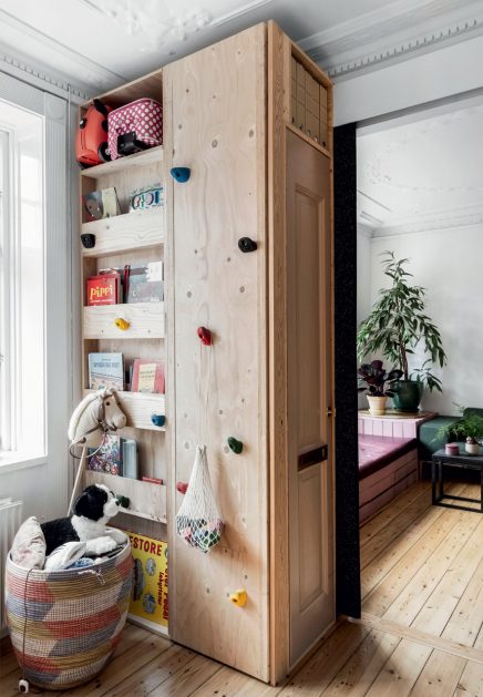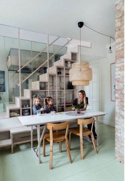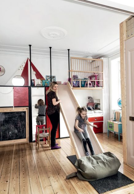 Dán belsőépítészek kisméretű, multi funkciós lakása Koppenhágában, amelyet kreatív tulajdonosai skandináv stílusban, igazán egyedi megoldásokkal újítottak fel. A 84 négyzetméteres lakást teljes egészében a 4 tagú család igényei alapján, a tereket maximálisan kihasználva, térnövelő trükköket is alkalmazva alakították ki: sok fehér és világos szín alkalmazása, tárolóként is használt dobogó és olvasókuckó egyben, üveg és háló korláttal kialakított lépcső, a lépcső alatti tér polcos szekrényként való kihasználása, tükrös felületű lehajtható ágy. A gyerekszoba bútorait is a szülők tervezték, megadva a gyerekeknek a lehetőséget az aktív játékra. Az egész lakás, laza és otthonos, praktikus ötleteiből érdemes inspirálódni!