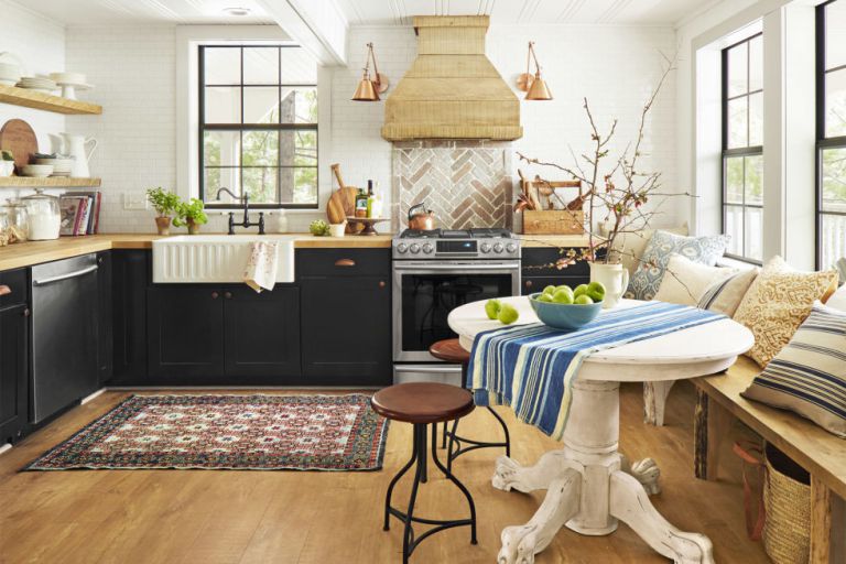 A country és a chabby chic stílus keveredik ebben a tüneményes családi házban Kaliforniában. A száz éves, ódon, kopott kisbútorokat ízlésesen illeszti be a térbe napjaink bútorai közé. A látszó fa felületek, szép gerendák és egy kis nyers tégla sem maradhat el. A fürdőben stílusosan lábas kád van, téglaburkolaton és persze réz csapok.