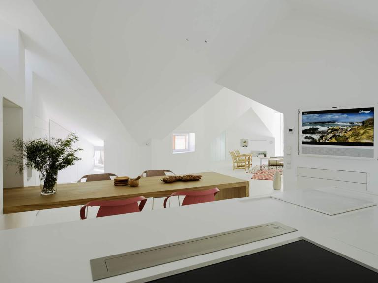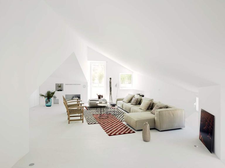 Az 1900-ban épült, majd a 40-es években korszerűsített lakást két remek és jónevű építész, Wespi de Meuron Romeo, valamint az Abaton formálta 21. századivá. A munka annyira jól sikerült, hogy az Architizer díjjal jutalmazta a tervezőket. A megrendelő kívánsága részben a lakás modernizálása és otthonossá tétele, valamint a tetőtér beépítése és a már meglévő terekhez történő integrálása volt. Az eredmény: szellős és légies enteriőrök, design bútorzat, ergonómia és kényelem, nem utolsósorban pedig környezettudatosság.
