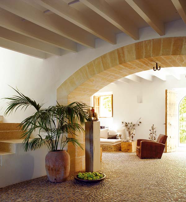 A ház tulajdonosa egy német építész, Thomas Wegner, a különleges mallorcai miliőből merített inspirációt háza átalakításához. A felújítás során törekedett a helyi építészeti sajátosságok hangsúlyozására, így például a gyönyörű, kavicsból rakott padlót is eredeti szépségében őrizte meg. Nem nyúlt a rusztikus hatású terméskő falhoz sem, nem rejtette sem gipszkarton, sem vastag vakolat réteg alá. A régi látszógerendákat felújotta, ahogy a boltíves átjáró is új formájában mutatkozik, továbbá új külsőt kapott a kandalló. A berendezés egyszerre modern és rusztikus, de minden szempontból a környezetbe illő.