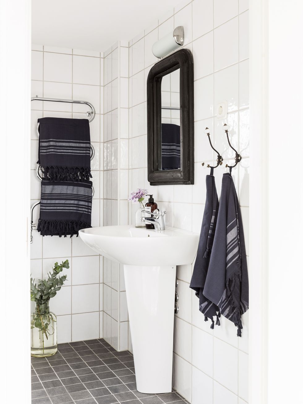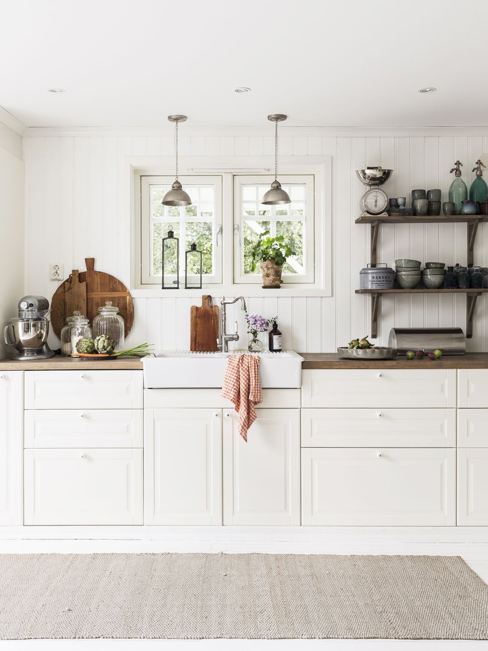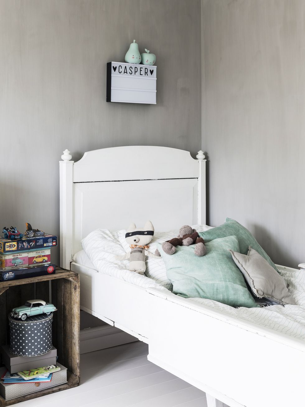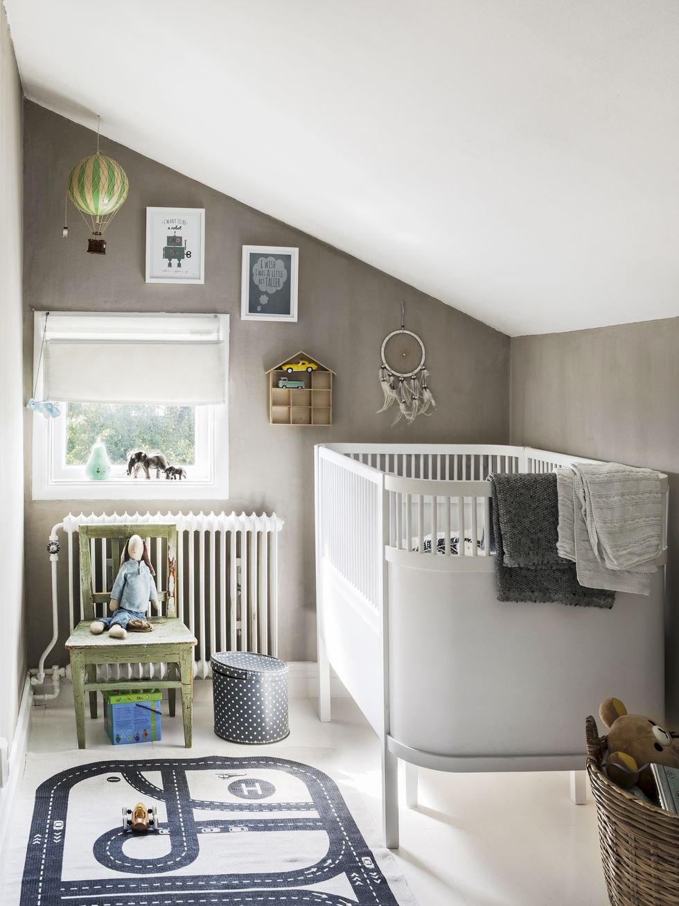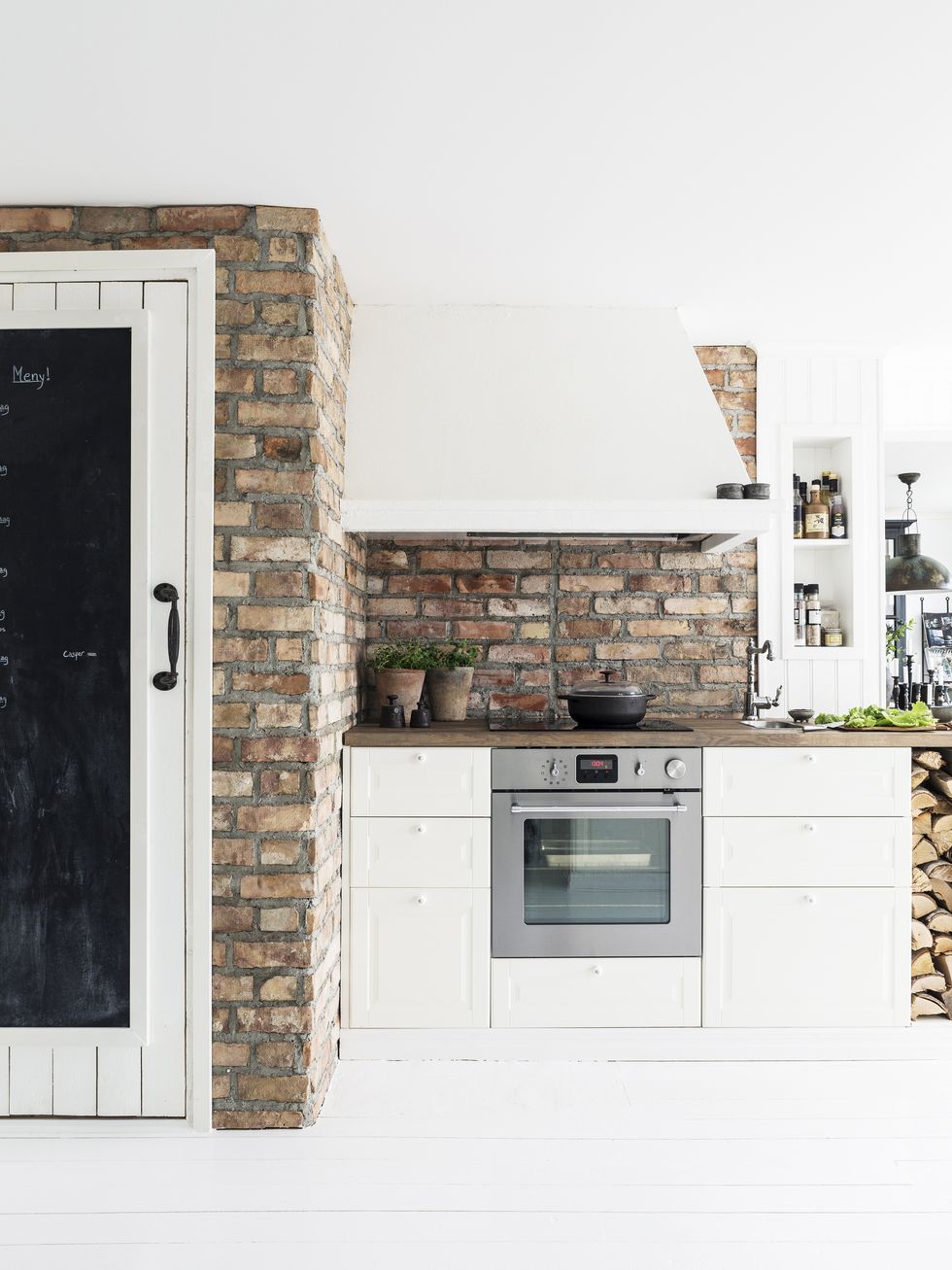Tisztaság és itt-ott kopottas báj vonul végig e világos otthon minden szegletén. A nyers téglafal a nappaliban és konyhában is megjelenik, a hófehér alapok szépen kiemelik. A gyerekszobák kialakítása, színvilága nem harsány, mégis idilli mindegyik gyerek birodalma.