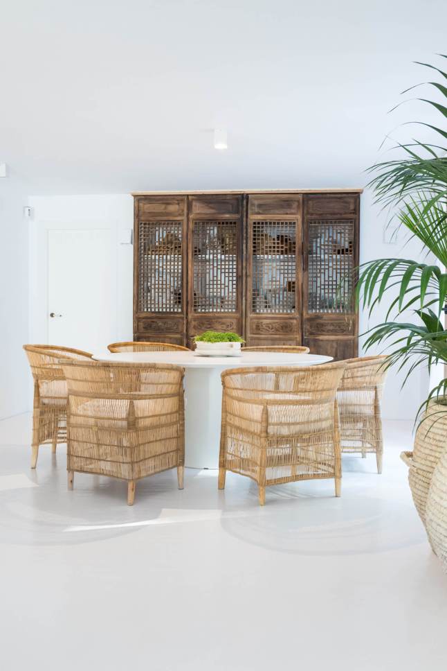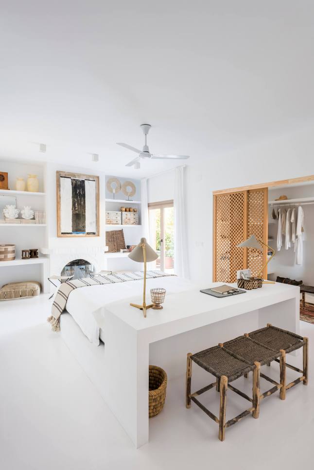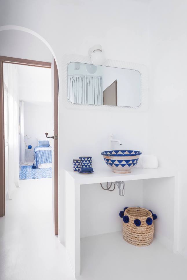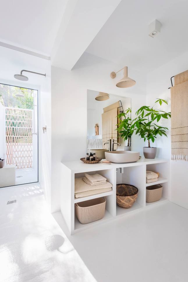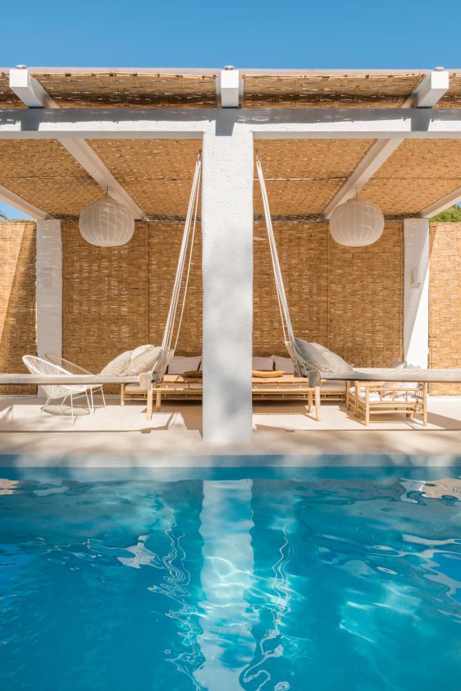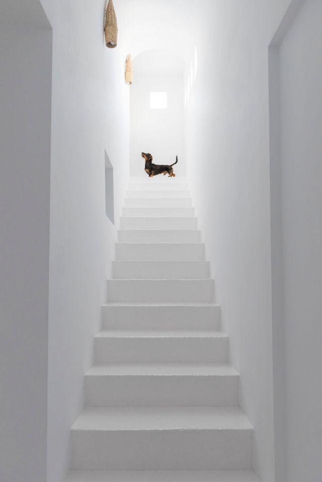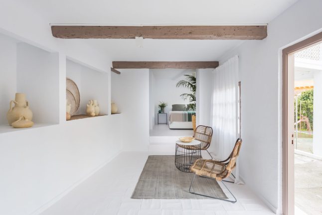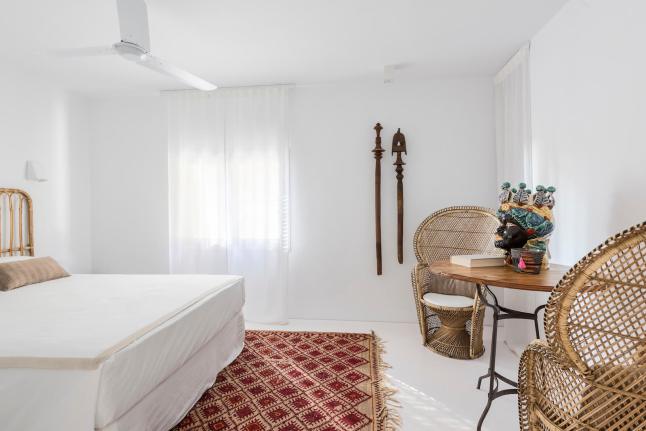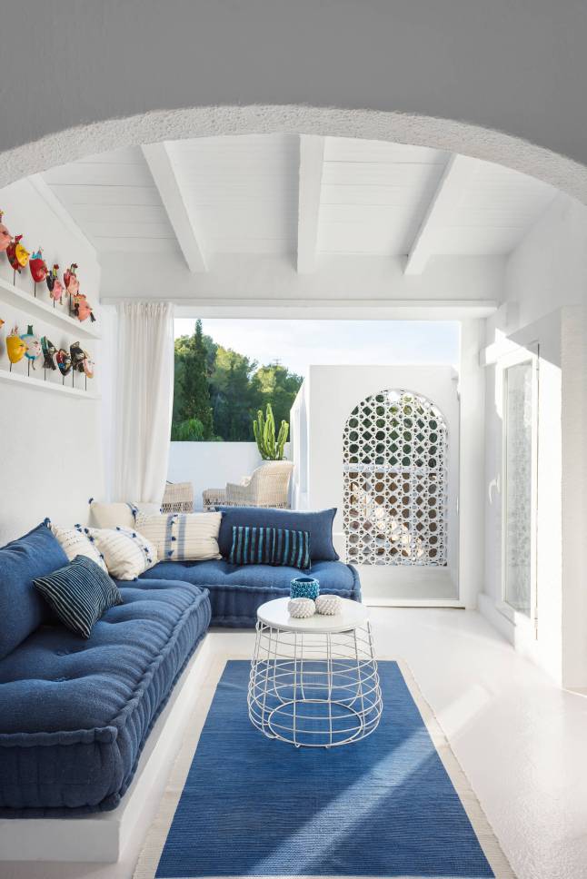 A stílusok keveredésének és tökéletes harmóniájának lehetünk tanúi ebben a mediterrán nyaralóban. Az épület tehát mediterrán, annak minden ismert vonásával: fehérre meszelt falak, apáca cserép, gerendák, kőlépcsők, masszív falak. Az enteriőr azonban bőségesen tartogat meglepetéseket. Odabent hófehérség, minimalizmus, mely mégis mentes a maga szokásos ridegségétől. És ez főleg a rusztikus és egzotikus, nagyon natúr megjelenésű berendezésnek köszönhető, melyet hellyel-közzel egy-egy modern designer darab tarkít, telt, élénk színekben.