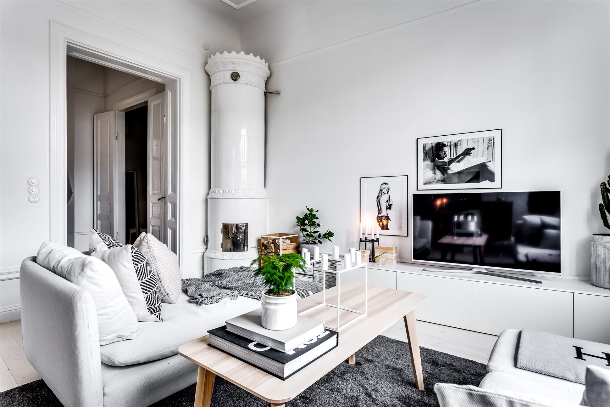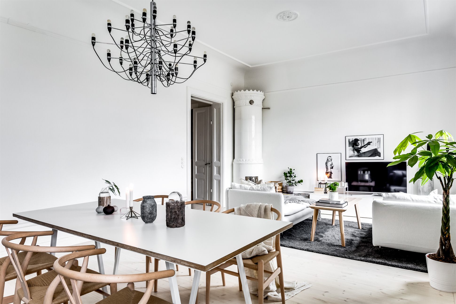 Jellegzetes hangulatú, mégis megunhatatlan egy ilyen skandináv stílusú otthonba bekukkantani! Az északi emberekre jellemző kreativitással és lazasággal alakították ki ezt a lakást is, világos, fényben és természetes anyagokban gazdagon, számukra kényelmes módon, ahol hagyták, hogy érvényesüljenek a lakás építészeti karakteres elemei is. Praktikus és modern konyha, monokróm színvilág, fekete-fehér képek, zöld növény dekorációk, modern függeszték és IKEA rattan burájú lámpa együtt, mind olyan elem, amely az ilyen skandináv stílusú otthonokban megtalálható.