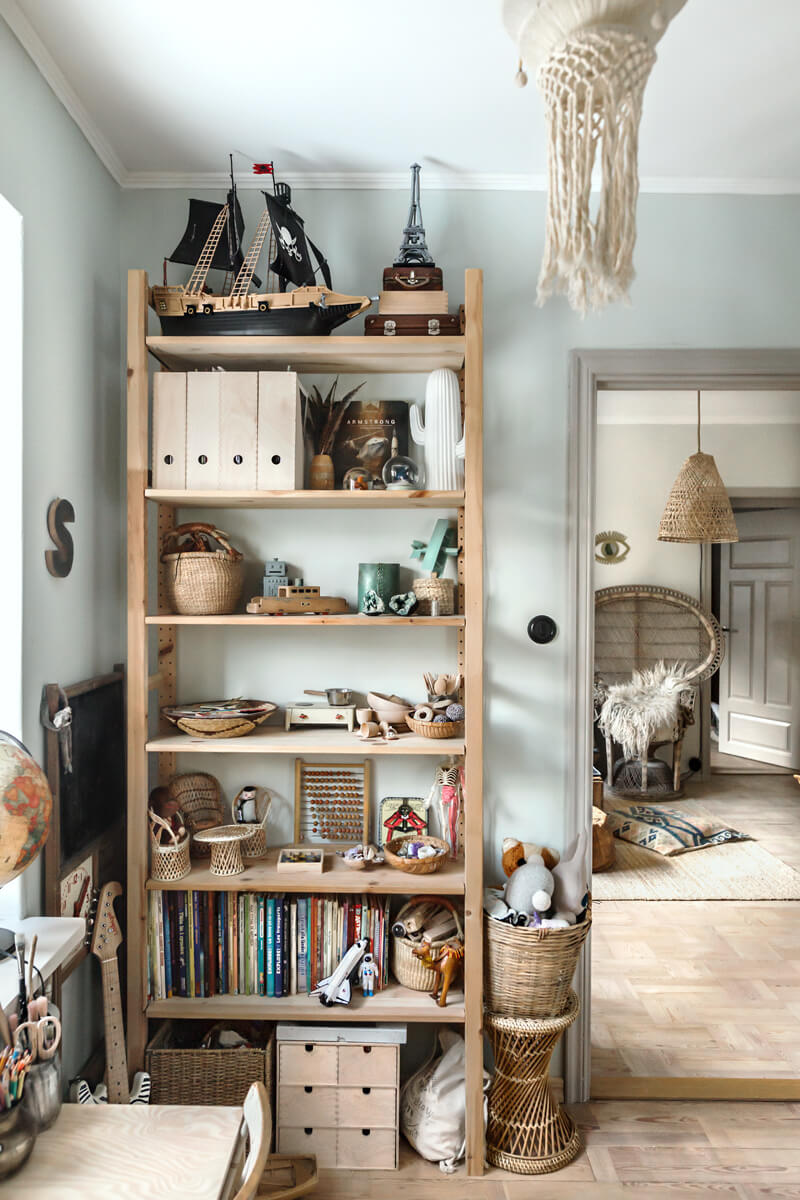 Nézzük meg alaposan ezt a gyerekszobát! Tulajdonképpen semmi különöset nem látunk, még csak nem is különösebben színes, nincs semmi csili-vili benne, sehol egyetlen "cukiság", minden egyszerű és nagyon természetes. Talán éppen ettől működik?! Az ágy!! Saját tervezésű, az alja tele tárolóhellyel. A lámpa búrája makramé, saját készítésű, egyedi. A bútorok natúr, épp csak viaszolt felületűek, fenyőből készültek. Az íróasztal ugyancsak saját készítésű. Itt minden megvan, amire a gyerkőcnek szüksége lehet, miközben a környezet rendkívül inspiráló, nem viszik el a figyelmet a felesleges részletek.