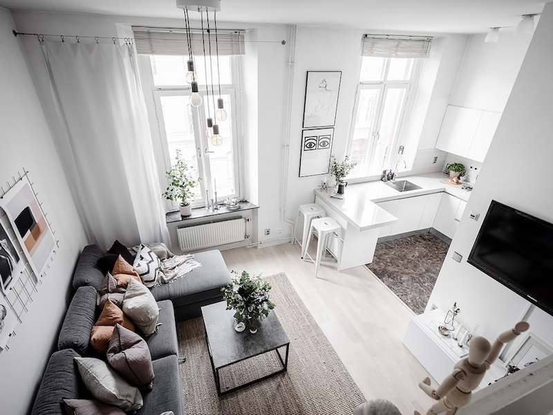 Az északon található Göteborgban már jóval kevesebb a napfény, mint kis országunkban. Ezért a hívogató fehér színnel és a lehető legvilágosabb enteriőrrel oldják a fény hiányát. Nincs ez másképp ebben a lakásban sem.