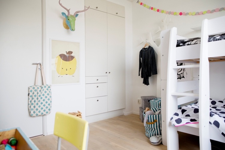 Amikor Allie 8 éves lett és megunta az emeletes ágyat, egy lakberendező tanácsát kérték, hogyan rendezzék be közös ötletek alapján a tiniszobát. A régi vagy megunt játékokat összerakták és elajándékozták. A puha rózsaszín falak festésébe a kislány is besegített, a nyitott polcok és tágas tér sok játékra ad lehetőséget neki és barátainak.Az ágy igazi kuckós kis birodalom lett, de külön kérte a sporteszközök felszerelését is. A függönyök, párnák és hangulatos kiegészítők csupa olyan ötlet, amire öröm ránézni.