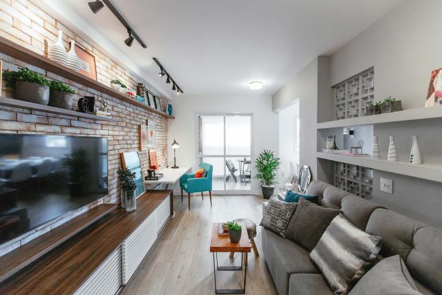 Tégla és színek egy kislakásban