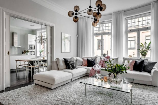 Minél magasabb a belmagasság, annál jelentősebb darabokat válogathatunk. Stílusban, színvilágban lehet egészen eltérő, ha eklektikusnak szánjuk, de bátran válogassunk olyat, ami stílusában belesimul, de például színében gyökeresen eltér minden mástól. Elvégre miért ne lehetne egy tér fókuszpontja a lámpa?