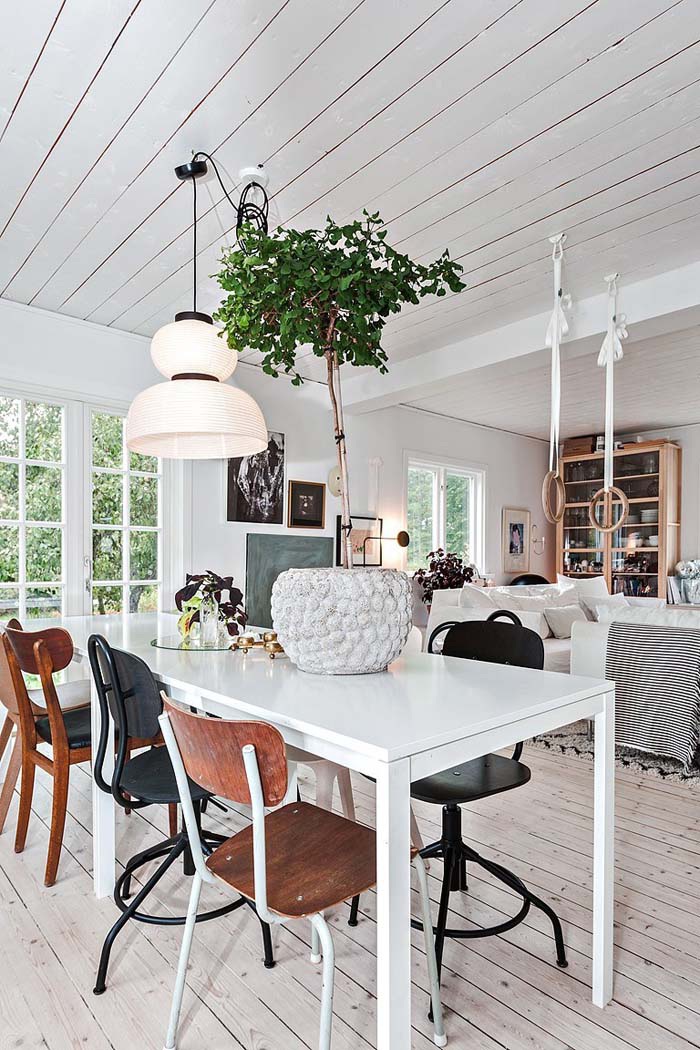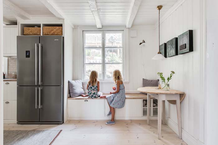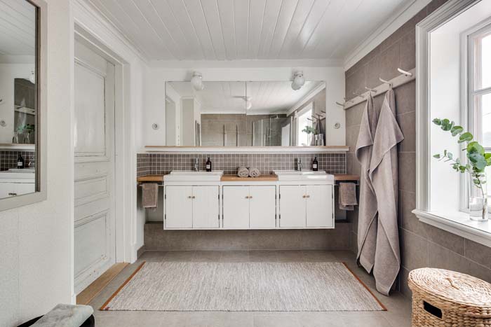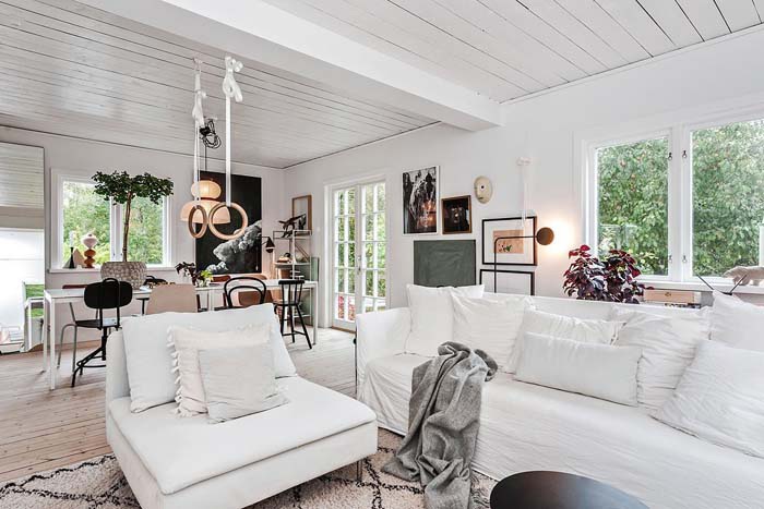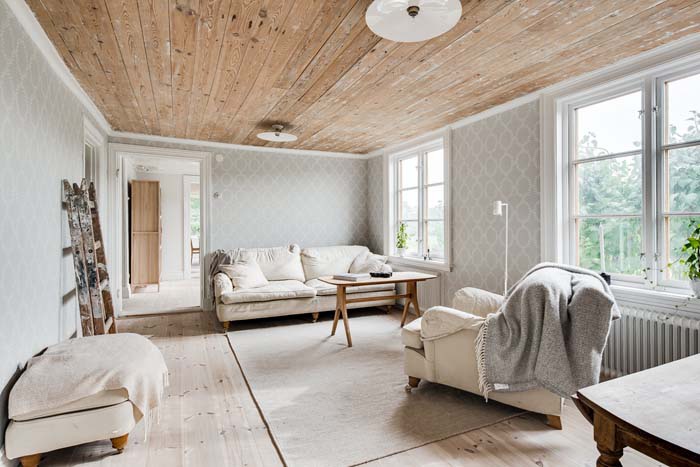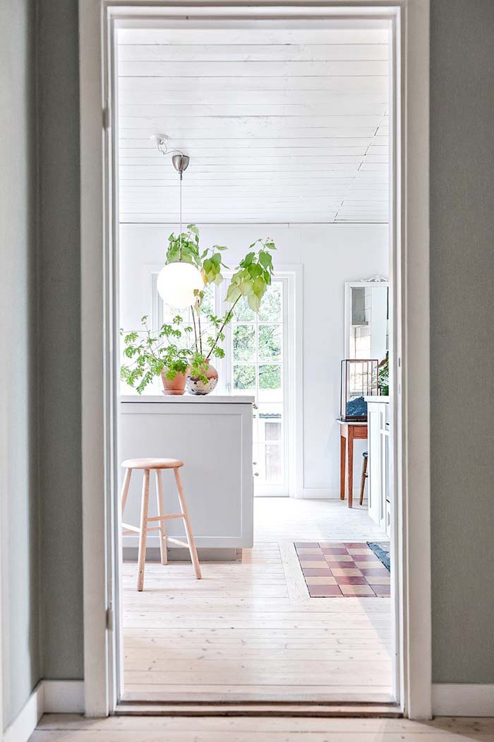 A rusztikus ajtókat meghagyva kellemesen modern, skandináv stílusban egészítették ki ezt a családi házat. A térrendezés és a színek is világosak, szellősek, a lehető legtöbb fény beengedésére törekednek. Izgalmas a modern és az ódon találkozása, inspiráló lehet azoknak, akik felújítás előtt állnak.