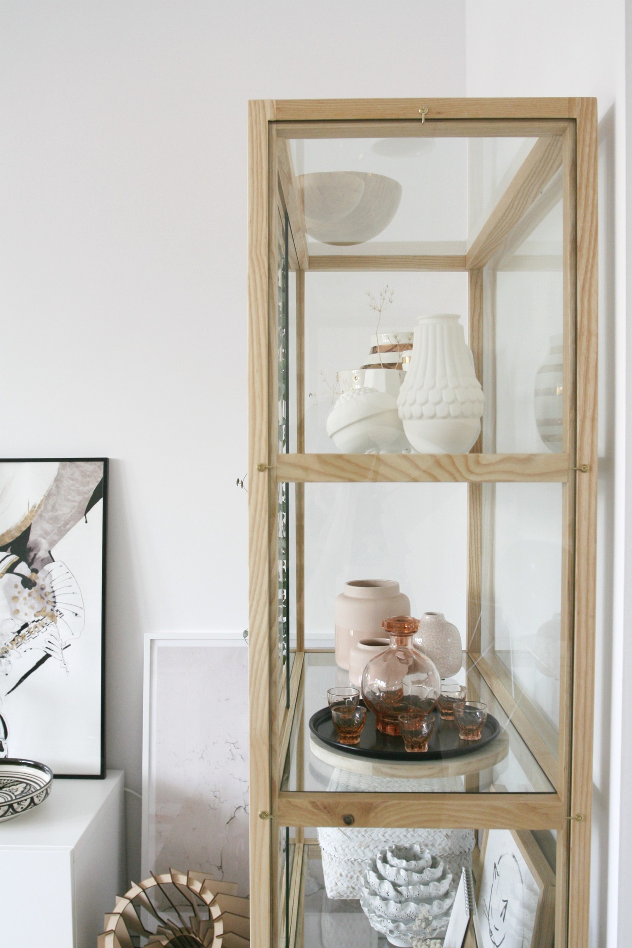 A második képen néhány vitrinben elhelyezett tárgyat látunk. Előnye, hogy felfogja a port, így ritkábban szükséges takarítani. És ha netán bármilyen kisállatot tartunk a lakásban, ő sem veri le az asztalról, polcról.