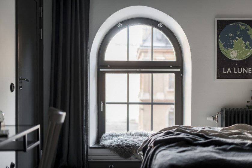 A dekoráció mindenütt ötletes, sehol sem erős, nem harsogja túl a bútorokat. Különösen kedves részlet a hálóban az íves ablakba tett szőrme. Kiváló ülőhely lehet.