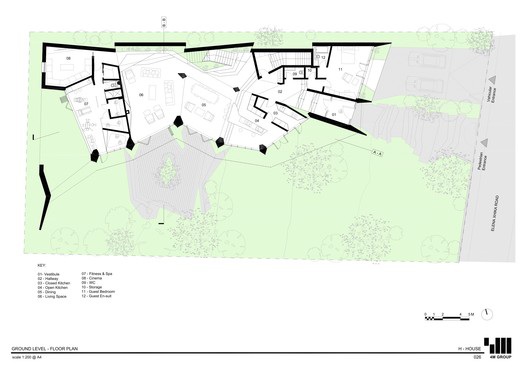 A megrendelők kívánsága szerint a hangsúly a biztonságon van, mindeközben rengeteg természetes fény beáramlását tették lehetővé. A homlokzat fő összetevői a szigetelt vasbeton homlokzatok és a hármas üvegezésű ablakok. A ház délnyugati fekvésű, ahol óriási ablakok nyílnak a kilátásra. A tervezők ablakokat az eresztől 1200 mm-re visszaállították, hogy nyáron árnyékolást biztosítsanak a fentről érkező napsugárzástól, és lehetővé tegyék az alacsony téli nap behatolását és a ház belsejének melegítését. A különböző szintezésű helyszín lehetővé teszi a természetes keresztszellőztetést, hogy a nyári hónapokban hűtést biztosítson.
