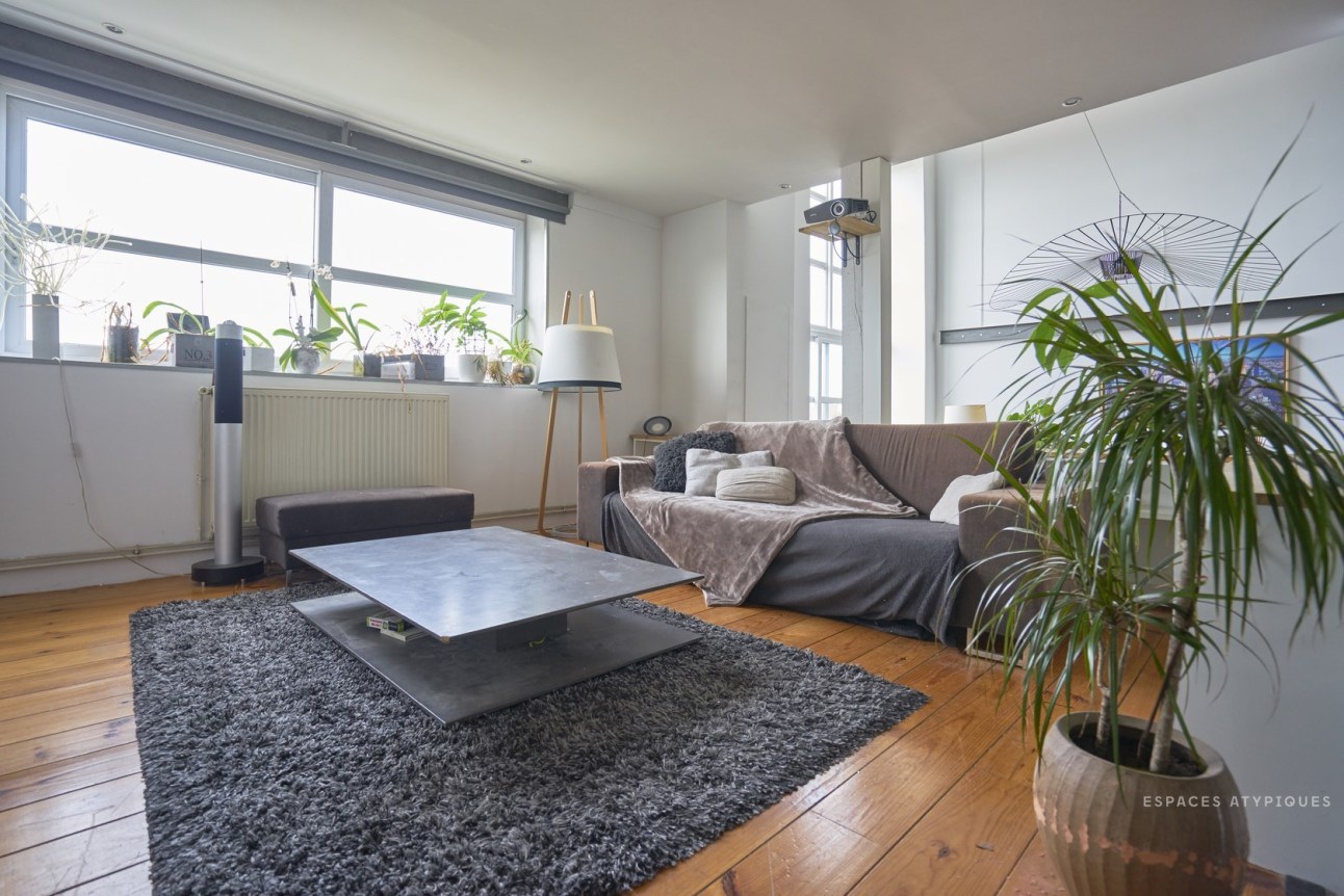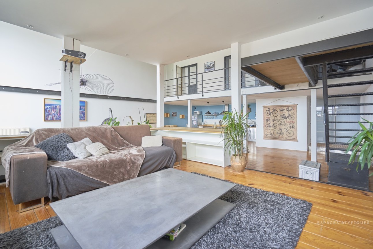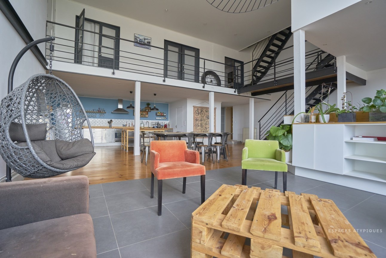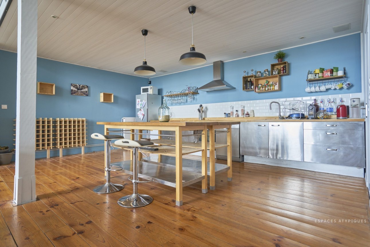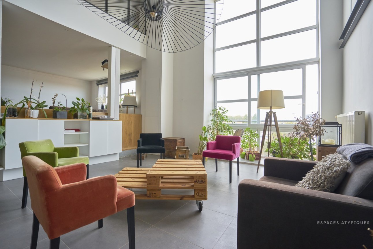 A nagy belmagasság nagyon impozáns hatást kelt, de sok esetben tűnhet tőle a tér kihasználatlannak. Ezért érdemes néha kicsit csalni optikailag: itt a vízszintes dekor csíkkal, és a falról merevített lámpával érték el ezt.