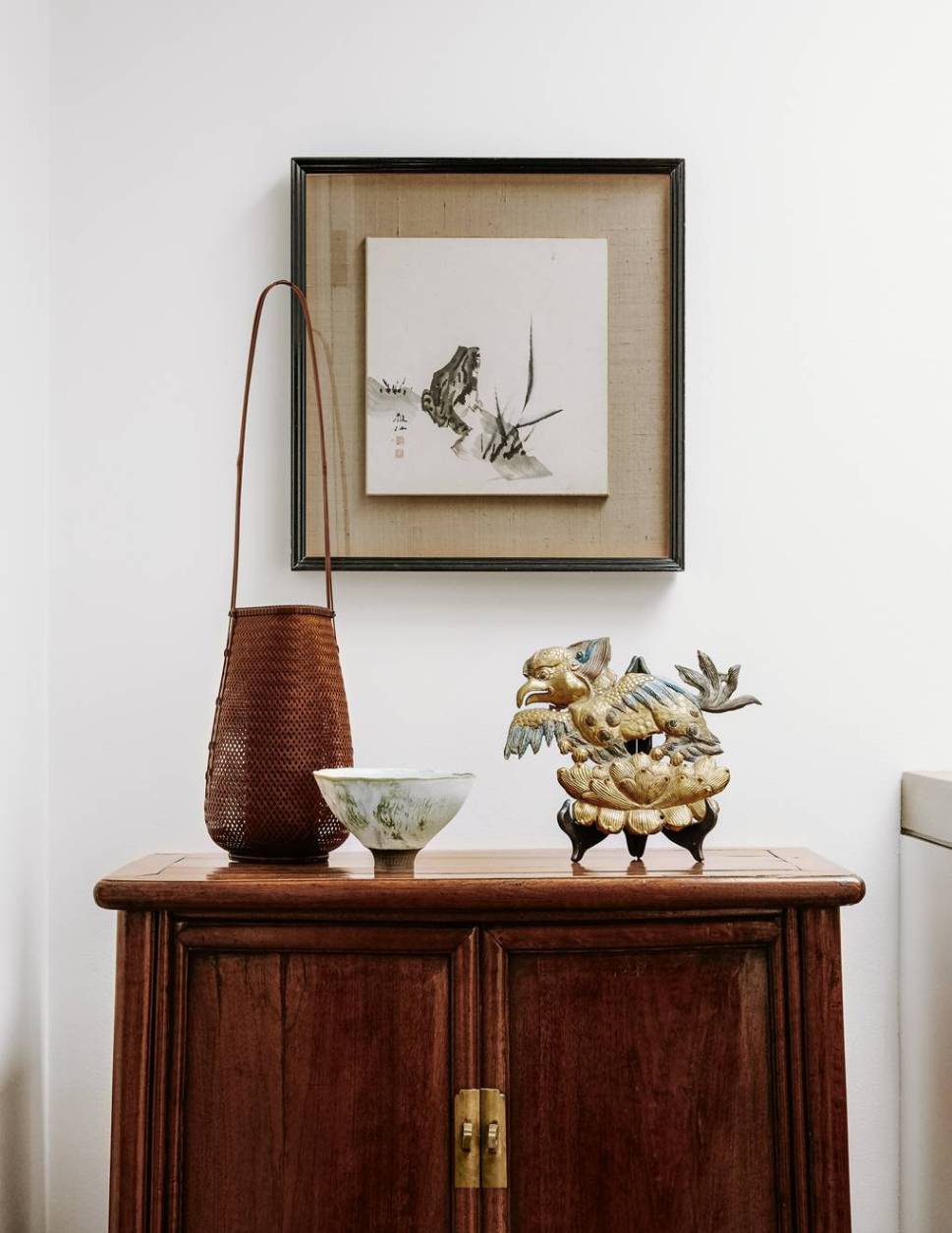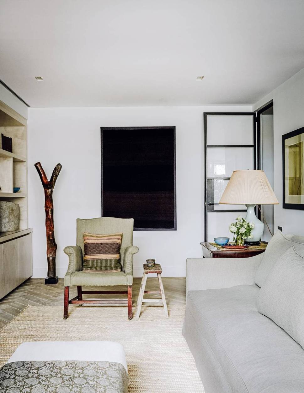 Tele van jó ötletekkel, a gézszerű függöny például telitalálat mindenütt, nagyon jól megvan a bársony kék fülesfotel mellett. Ahogy az ütött-kopott művészeti tárgyak mellett is.
