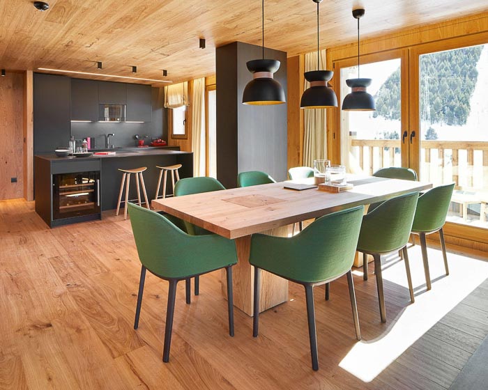 Ha minimalista vonalvezetésre, de meleg megoldásokra vágysz, akkor jó helyen jársz. Ezek a vidéki, hegyi leejtőkön épült házak tökéletesen ötvözik a kettőt. A fa szeretete és melegsége végigvonul mindhárom lakás belső terein. Itt-ott rajtakapjuk a tervezőt a kézműves dekoráción vagy eklektikán, de összességében az alap egy modern stílus.