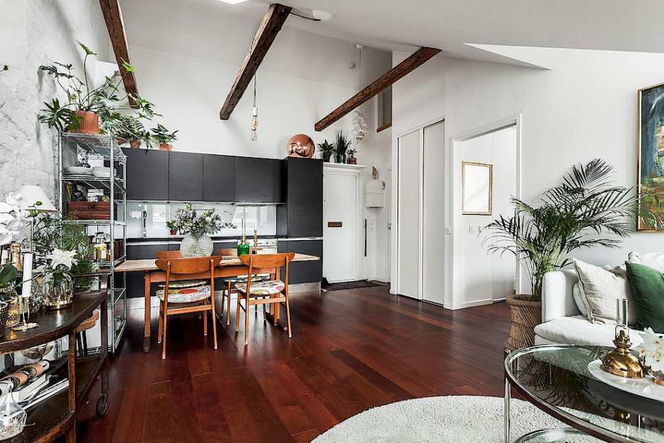 Amikor megnézzük a képeket, egy nagyon kényelmes, tökéletesen berendezett lakást látunk. A helyiségek tágasak, jó beosztásúak, az egyterű konyha-étkező-nappali elrendezése minden igényt kielégít, a hálószobában pedig okosan kialakított tárolóhelyben sincs hiány. És persze ne menjünk el szó nélkül a design mellett se, modern, fekete-fehér alapokon sok zölddel lett harmonikus.