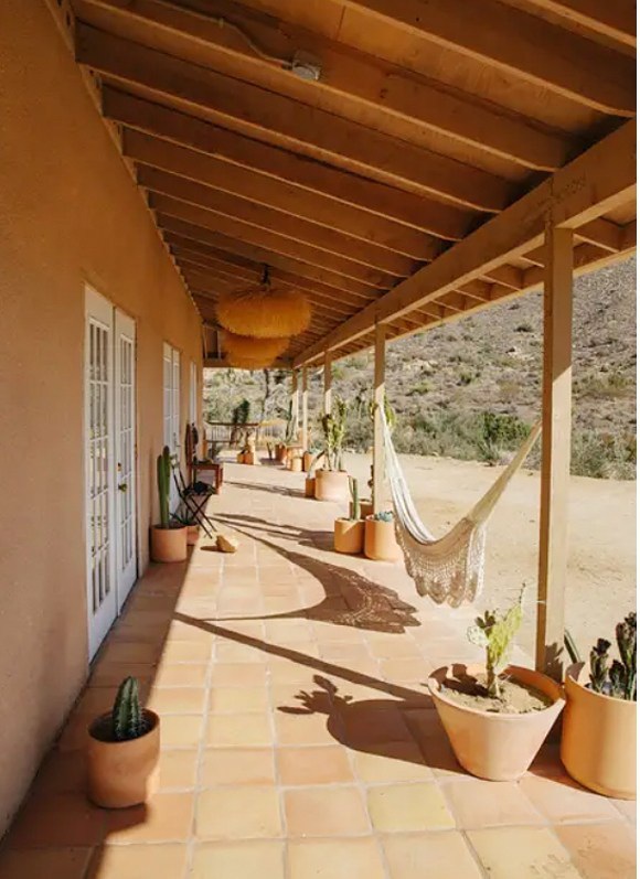 A Kaliforniai sivatagban, a Fekete Láva Butte Nemzeti Emlékmű árnyékában található Pioneertown-ház természetes díszítésével és egyszerűségével hívogat. Az ökológiai tervezés alapelveivel összhangban épült ház napenergiával táplálkozik, de mindazonáltal rendelkezik a modern kényelemmel. Néhány kilométerre egy vidéki útról földúton érhető el és csatlakozik a régió vad természetéhez. Letisztult formák, a fehér mint domináns szín uralják a családi fészket. A természet közelsége táplálja a bútorzat egyszerűségét. Mindenütt fa, növények, natúr dekoráció, tágas terek teljesítik ki a természetes milliőt.