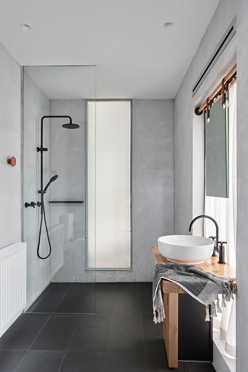 A lakás többségében monokróm színekből áll, mégsem kelt rideg hatást, a meleg fa anyagok használatának köszönhetően. Az anyaghasználat kapcsán még érdemes megjegyezni, hogy a modern letisztult formák mellett, kissé rusztikus robusztusabb elemek is megfigyelhetőek.