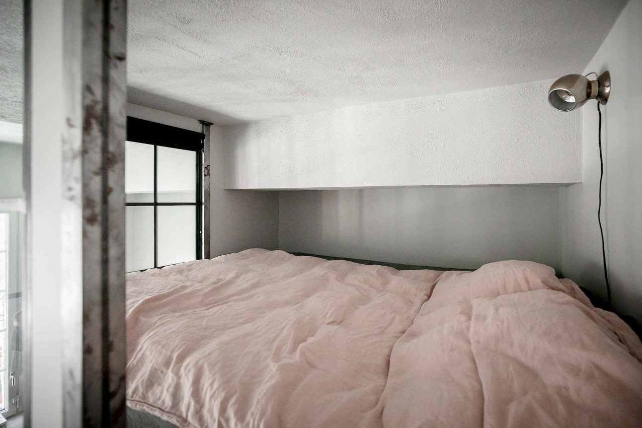 Belül a mennyezeti magasságot szenzációs ötlettel használták ki: építettek egy galériát, ami olyan mint egy hajófülke. Üvegfal miatt átlátható, de csendes is. Van hátul egy külön hálószoba, ez az üveg-galéria nemcsak erős építészeti elem, hanem kiváló módja annak, hogy legyen egy hely akár alváshoz, akár csak jelen lenni a nappaliban, ha valaki nem akar elvonulni..