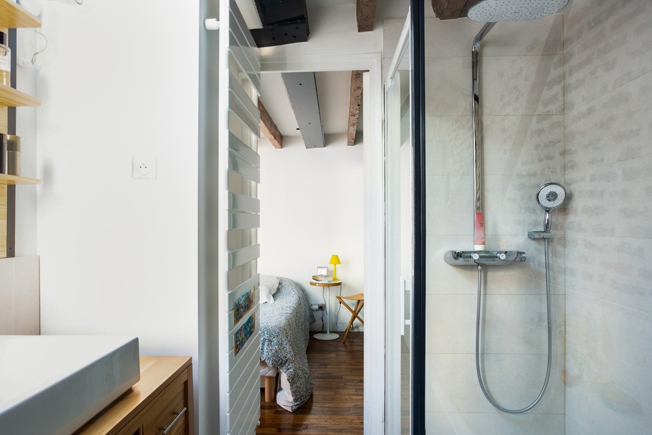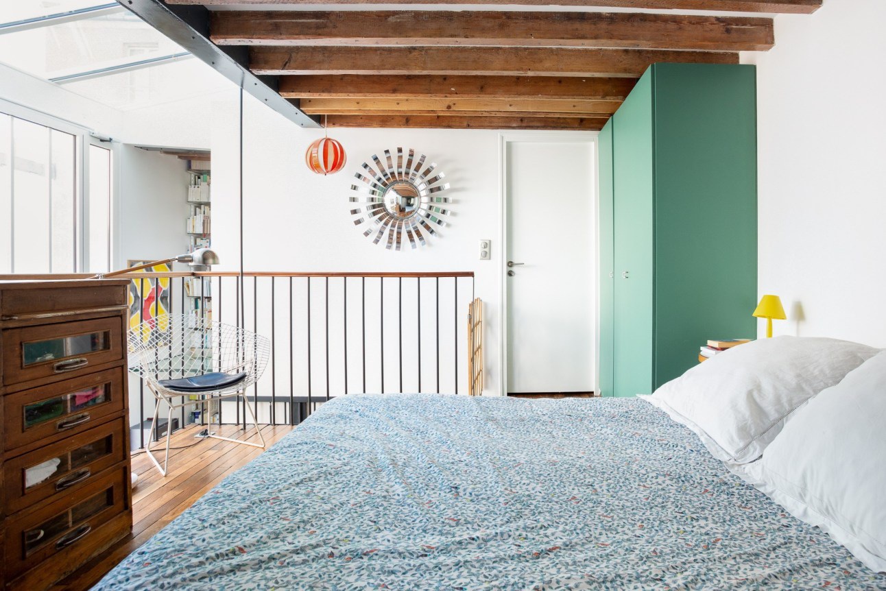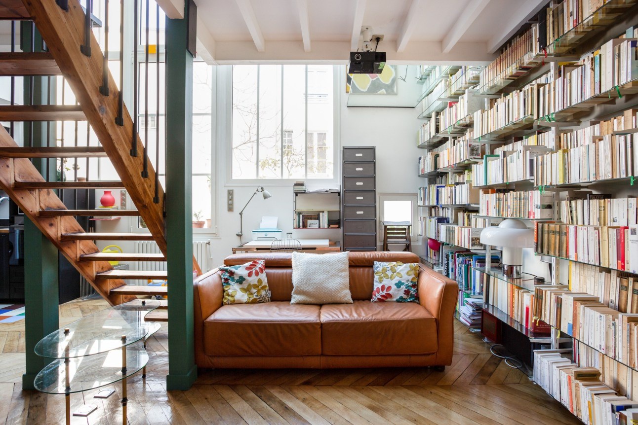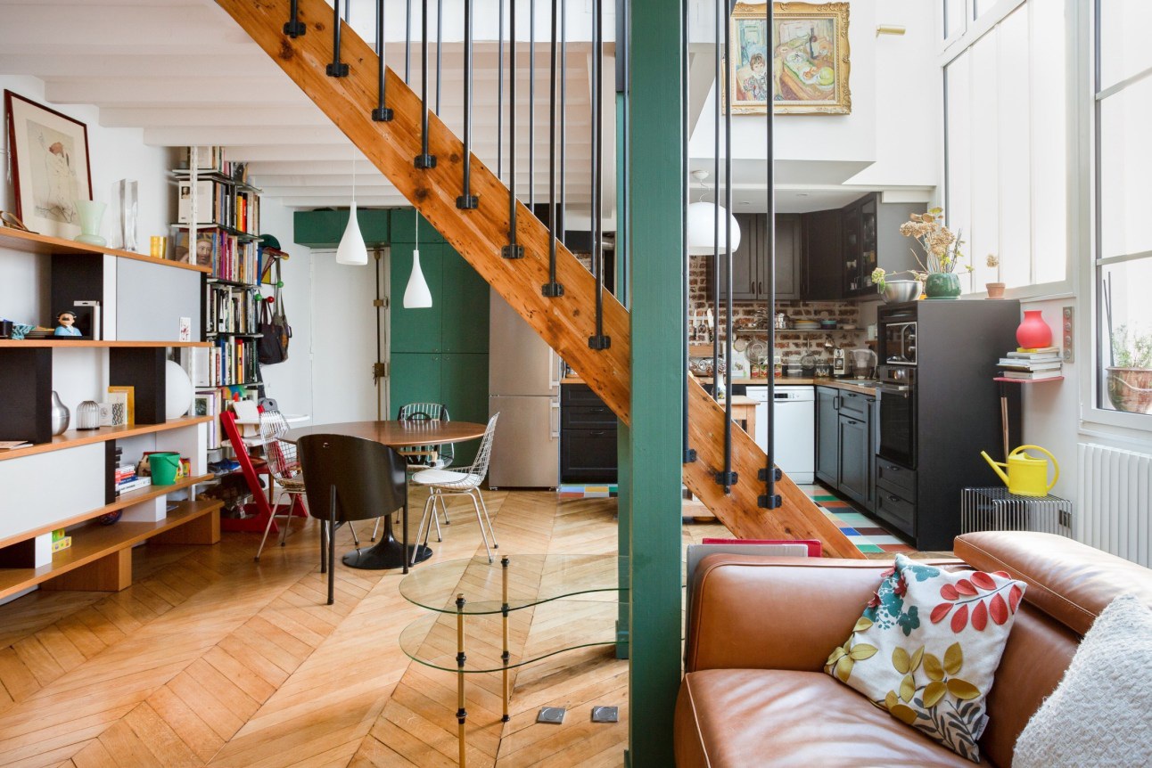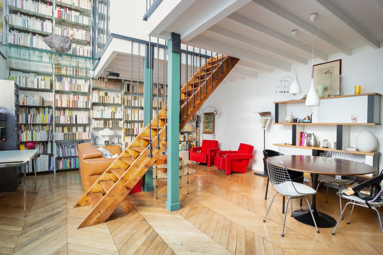 A bemutatott loft lakás képei Párizsban, egy művész stúdiójában készültek. A francia fővárosban, egy régi épület tipikus homlokzata mögött, szép udvarral és fákkal szegélyezett, kertes övezetben található.