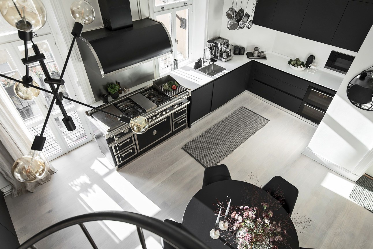 Ez a svédországi álomlakás 92 m2-es lakótér, és további 16 m2-es a tetőtér letagadhatatlanul egy álom. Ki nem szeretne egy ilyen különleges helyet, egy olyan nagy konyhát, mint egy étterem, fényűzően berendezve, ami a legjobb szakácsokhoz is méltó lehetne? Nem akarnak sokkolni minket, csak bemutatni, hogy ilyen is van, akinek igénye van rá és pénzügyi lehetőségei engedik, ezt a mintát bátran követheti!