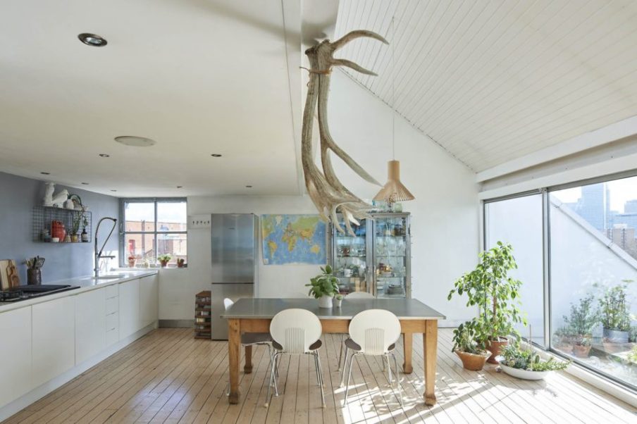 Tetőtér, hatalmas ablakok, világos otthon, lenyűgöző terasz és káprázatos kilátás a városra - ezt nyújtja ez a csodás londoni kislakás. Nagy belmagassága miatt sokkal inkább két emeletes, mint galériás. Ennek köszönhetően pedig sokkal kényelmesebb és tágasabb, mint más kislakások. Világos színeinek és hatalmas ablakainak köszönhetően pedig még tágasabbnak tűnik. Ugye milyen varázslatos?