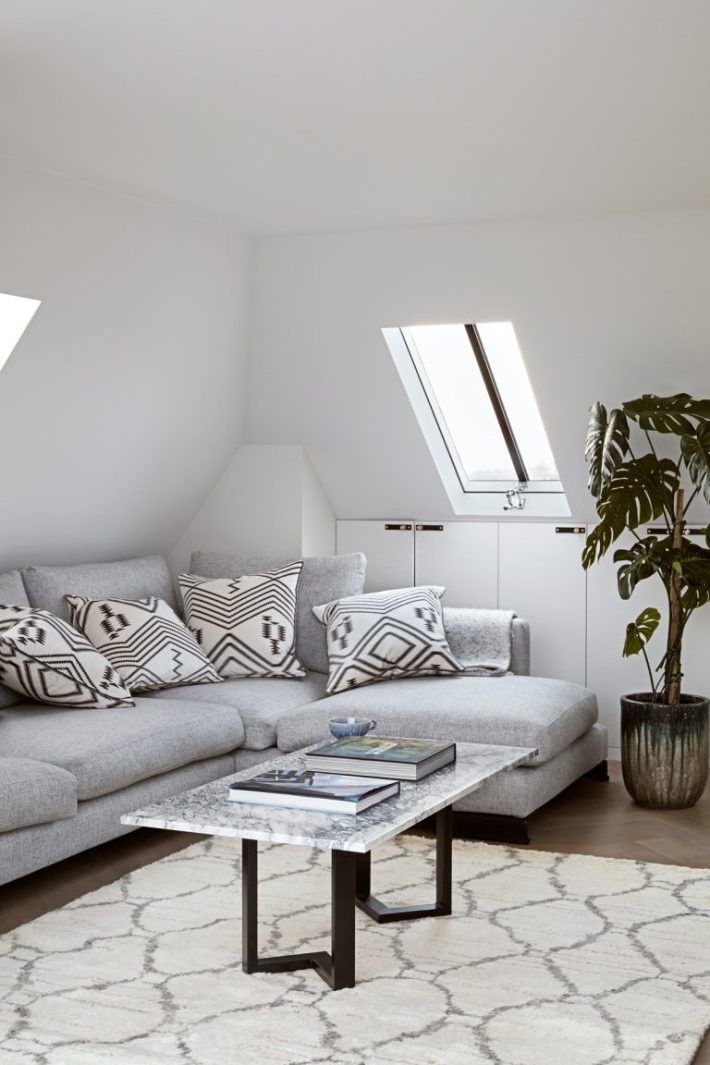 Amelie von Celsing svéd belsőépítész megkapta feladatát: ennek a lakásnak az új tulajdonosai annyit kötöttek ki, hogy monokróm színvilágot szeretnének. A tervező merészet gondolt és összehozta a patinát a luxe stílussal. A személyesre szabott tér minden sarkában találunk valami egyedit és különlegeset. A fehér téglafal kiegészíti a fehér színvilágot, textúrát ad hozzá, így a vakító fehérséget megtöri, barátságosabbá teszi.