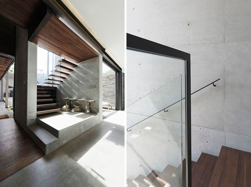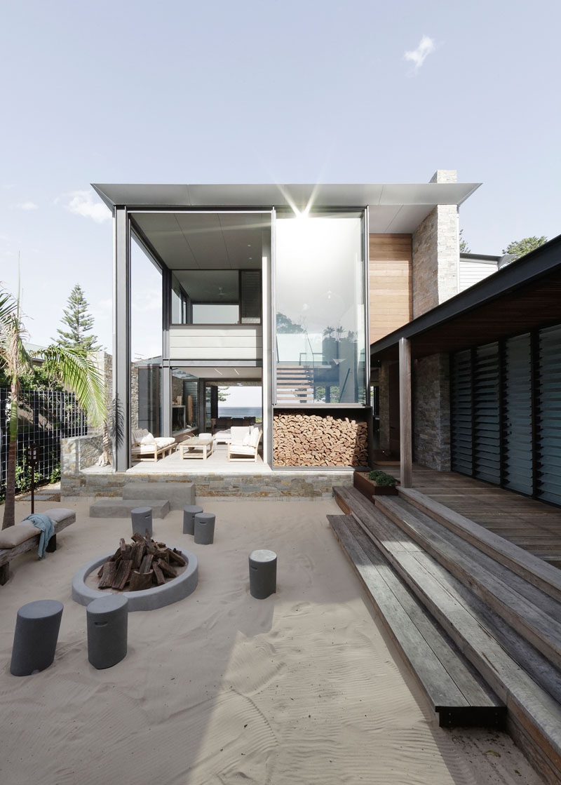 A modern épületben a beton és a fa felületek harmonikus együttműködését láthatjuk. Ez nem csak a enteriőrben megjelenő anyag használatra értendő, hanem külső modern forma-, és anyagvilág egyensúlyát a gyönyörű tengerparti környezettel. Mindezt pedig néhol még a természetes kőburkolattal is fokozták. A berendezés inkább funkcionális és praktikus, de az összhatás mégis nagyon otthonos.