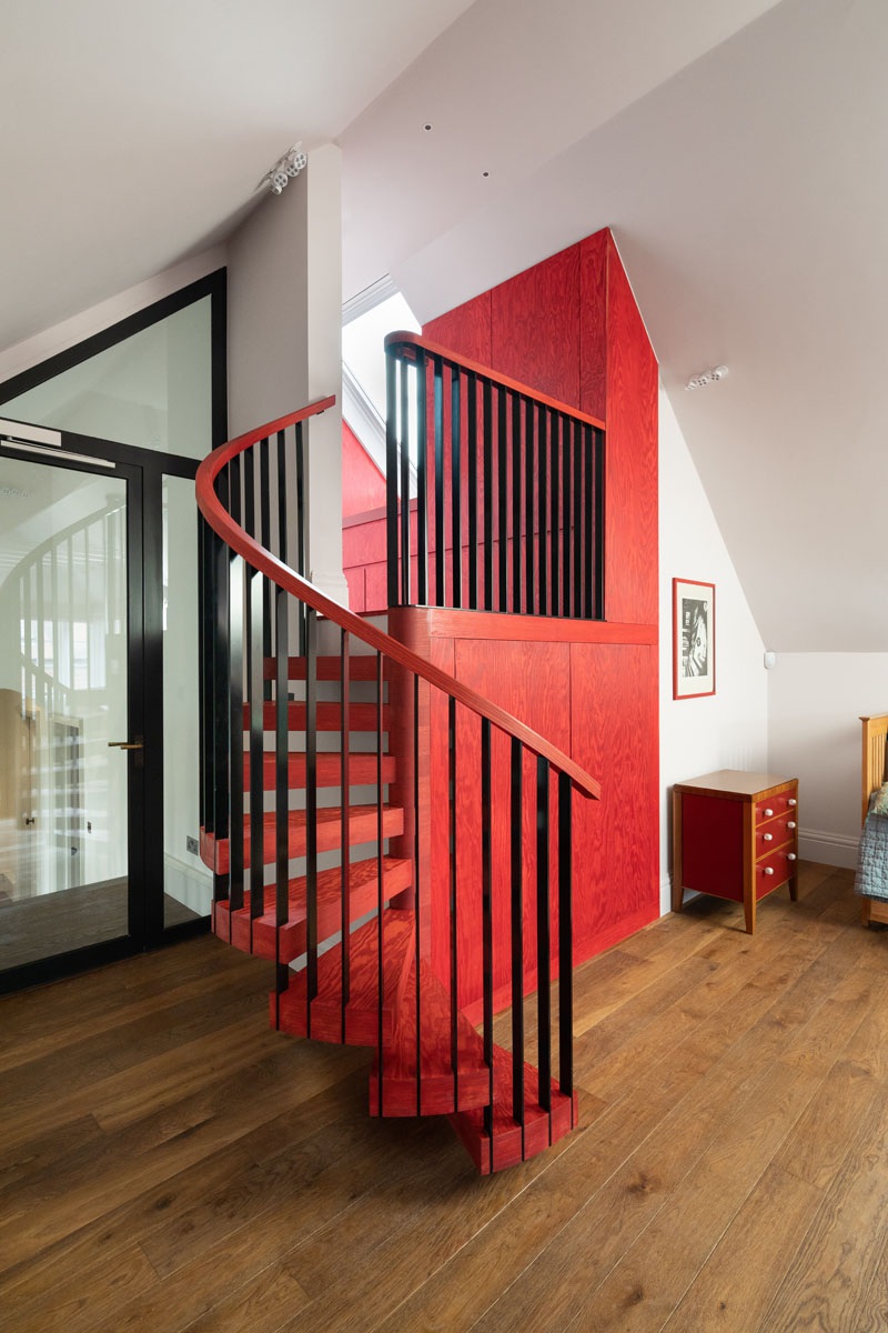 Egyedi ötlet például a piros lépcső, a sok tolóajtó, a fantasztikus fürdőszoba, a sok tárolós játszó szoba.