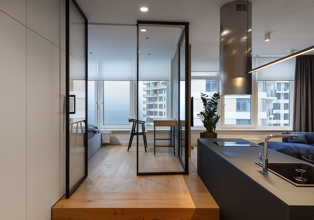 Két kislakás (39 m2 és 47 m2) inspiráló képeit látjuk, ahol az egyszerú, modern faburkolat és betonfelületek kitűnő egységességére látunk jó példát.