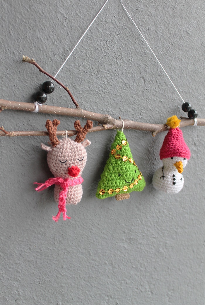 Egy faág, LED fénysor és kézi horgolással készült cuki figurák!