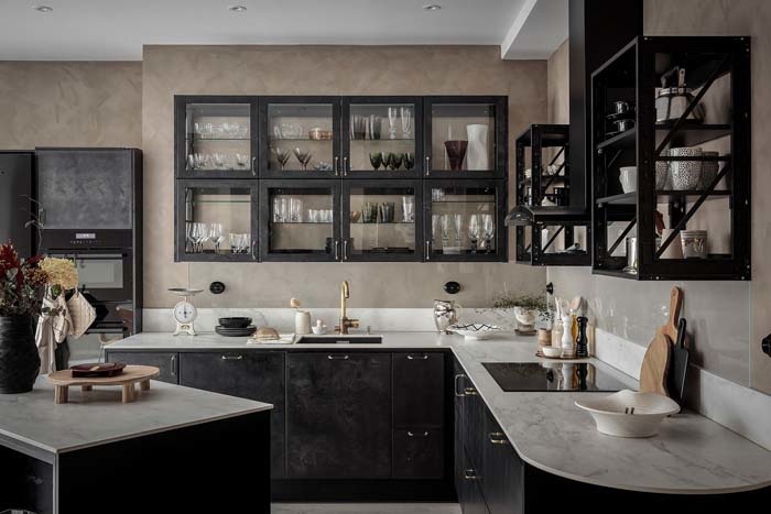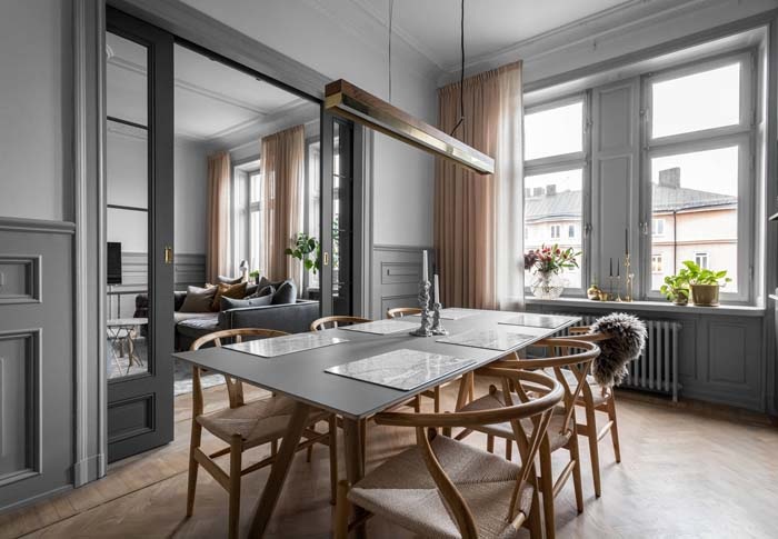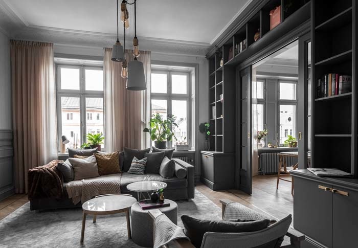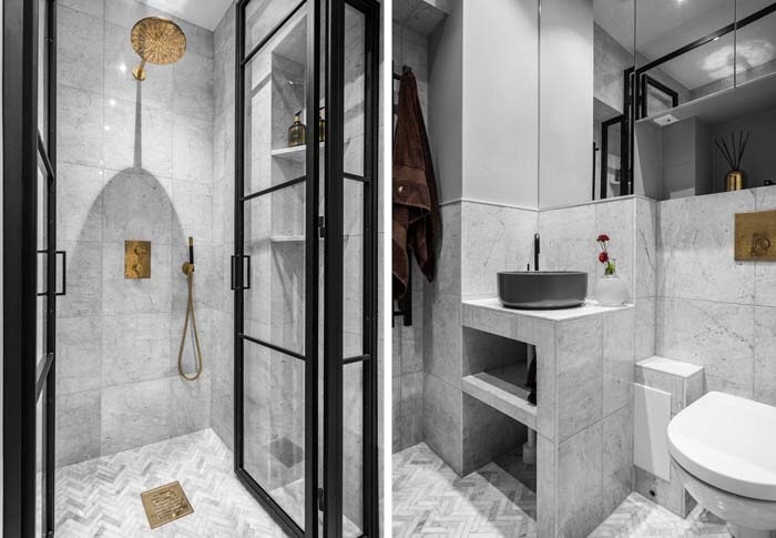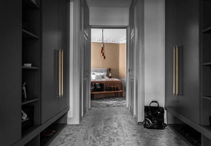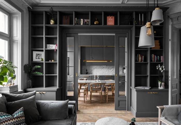 A klasszikus találkozik a modernnel ezekben a lakásokban, ahol nem fukarkodtak a sötét színekkel, az arannyal és a sárgarézzel.