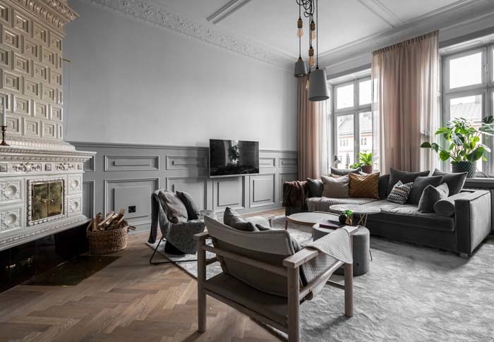 Minden itt bemutatott lakás fő motívuma a hagyományőrzés, a régi értékek tisztelete, és ahol szükséges vagy funkcionálisan igény van rá, kiegészül a modernnel és a letisztultsággal.