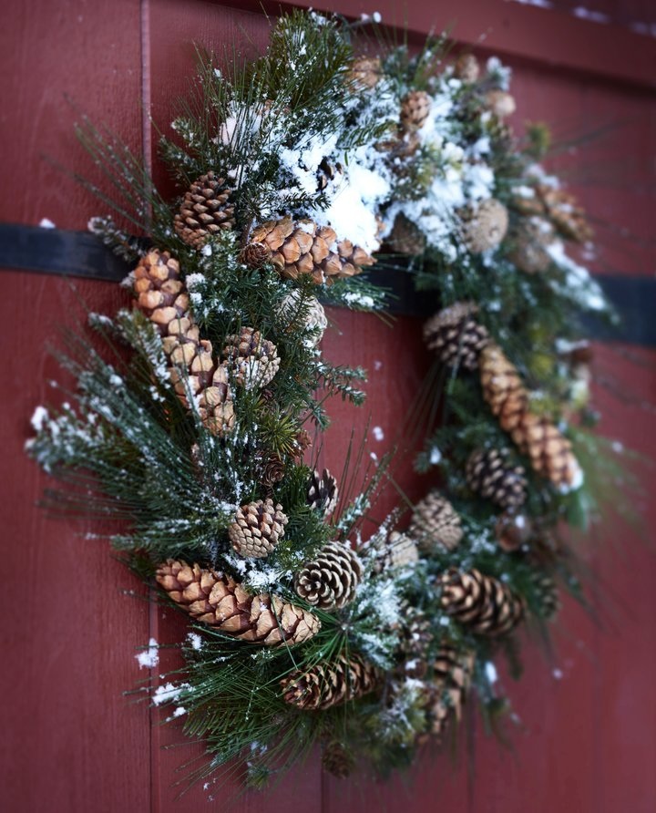 Kandalló, koszorú és virágok, faburkolat, tűzropogás, tobozos ajtódísz, hatalmas ünnepiétkezőasztal..... meseszerű képekkel.