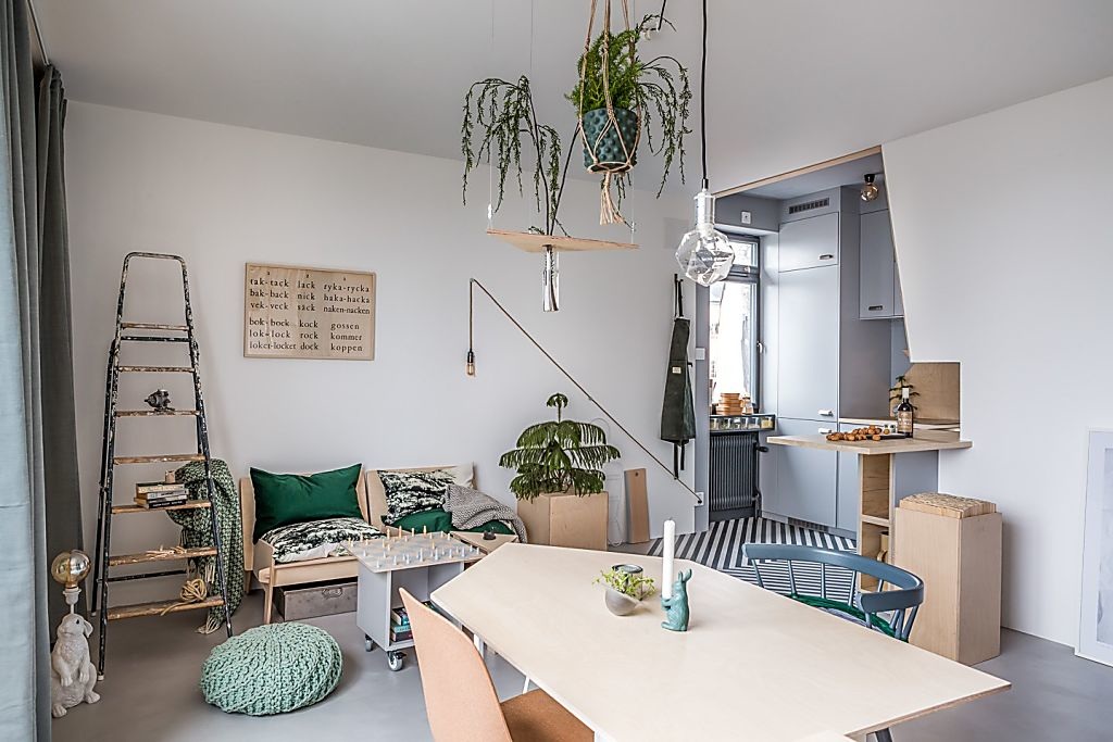 Ideális kialakításának köszönhetően különbözik a hagyományos apartmanoktól. A természetes nyírfa, a betonpadló és a grafika kombinációja szokatlan eredményt ad. A teret ügyesen kihasználják, a hálószobát jól elhatárolták és tárolóbútorokkal rejtették el. A világos színek dominanciája mind a bútorzaton, mind pedig a falak színében tágítja az enteriőrt. A minimális teret feledteti a hatalmas üvegfelület mögüli kilátás a városi tájra.