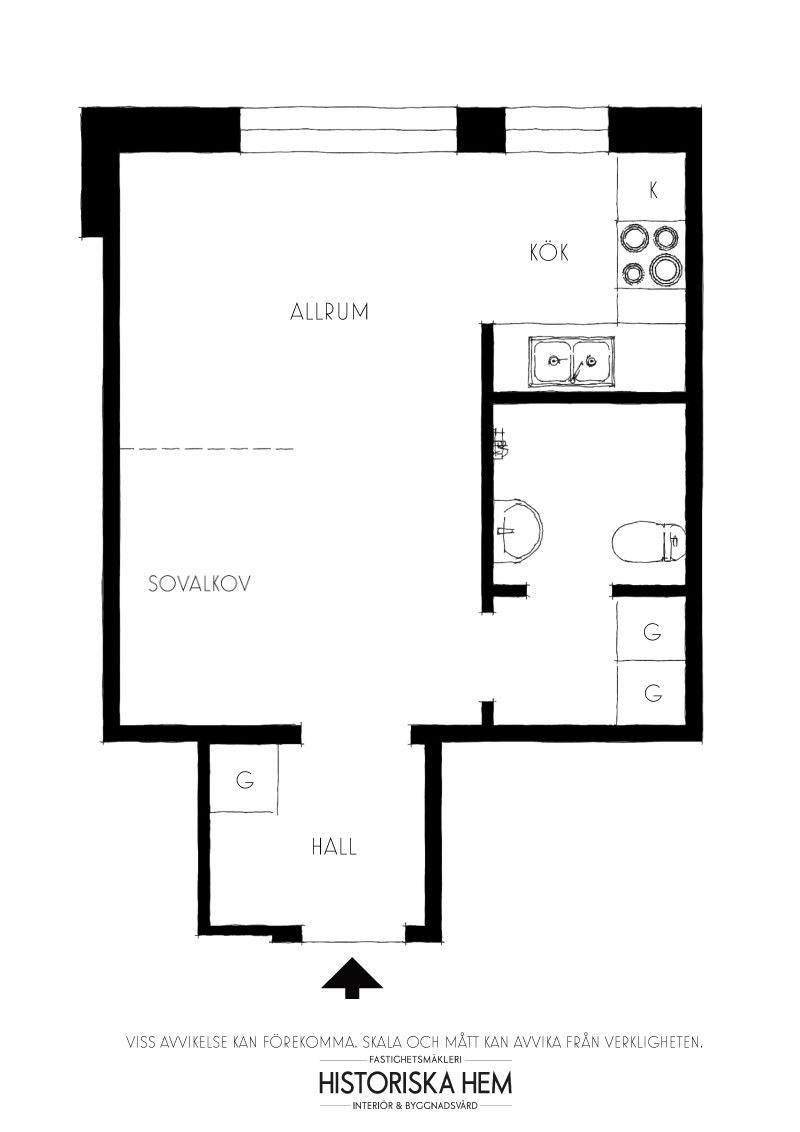 A bemutatott 27 m2-es garzon érdekessége a nappali-háló között elhelyezett esztétikus fa térelválasztó. Érdemes az alaprajzot is megnézni, mindennek van helye: praktikus konyha, étkező asztal, pici fürdő és a világos nappali, sőt még tárolóhelyek is vannak benne.